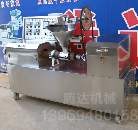 2、一机多用,更换磨具可生产牛排、豆皮、蛋白肉、人造肉、豆丝、豆花、豆筋、豆结、豆扣、豆肠、豆翅、豆鱼、豆虾、豆耳、腐带、腐皮、羊肉串、羊肚丝等。