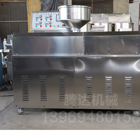 将淀粉和水比例调浆后送入粉条机进料口内通过螺旋推进装置将粉推进粉条漏板漏出,采用水蒸汽原理,双层水箱,给水加热,蒸煮粉条机内管,使粉条在螺旋推进当中得到成熟。采用独有的双螺旋更利于粉条粉丝的熟化,粉条在成形过程中经 100 度沸水煮熟,与手工制粉条的原理相同,没有破坏粉条粉丝的分子结构,所以与手工工艺相似.粉条机加工粉条比原手工节省人力.物力。大大的减少了淀粉的浪费.一斤淀粉可以加工一斤一两左右的粉条粉丝(原手工加工为一斤淀粉7-8两左右的粉丝)。