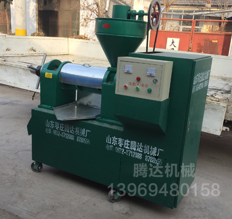 榨油机动转时,处理好的料胚从料斗进入榨膛。由榨螺的螺旋向里推进,进行压榨。因料胚在榨油机的榨膛内是在运动状态下进行的,在榨膛高压的条件下,料胚和榨螺、榨膛之间产生了很大的磨擦阻力。这样就能使料之间产生磨擦,造成相对运动。另一方面,榨螺的根园直径是逐渐增粗的。当榨螺转动时,螺纹使劲料胚即能向前推进,又能向外翻转,同时靠近榨螺纹表面的料层还随着榨轴转动。这样在榨膛内的每个料胚微粒都不是等速的,同方向运动,而是在微粒之间也存在着相对动动。由磨擦产生热量又满足了榨油工艺操作上所必须的一份热量,有助于促使料胚中蛋白质热变性,破坏了胶体,增加了塑性,同时也降低了油的粘性容易析出油来,因而提高了榨油机的出油率。